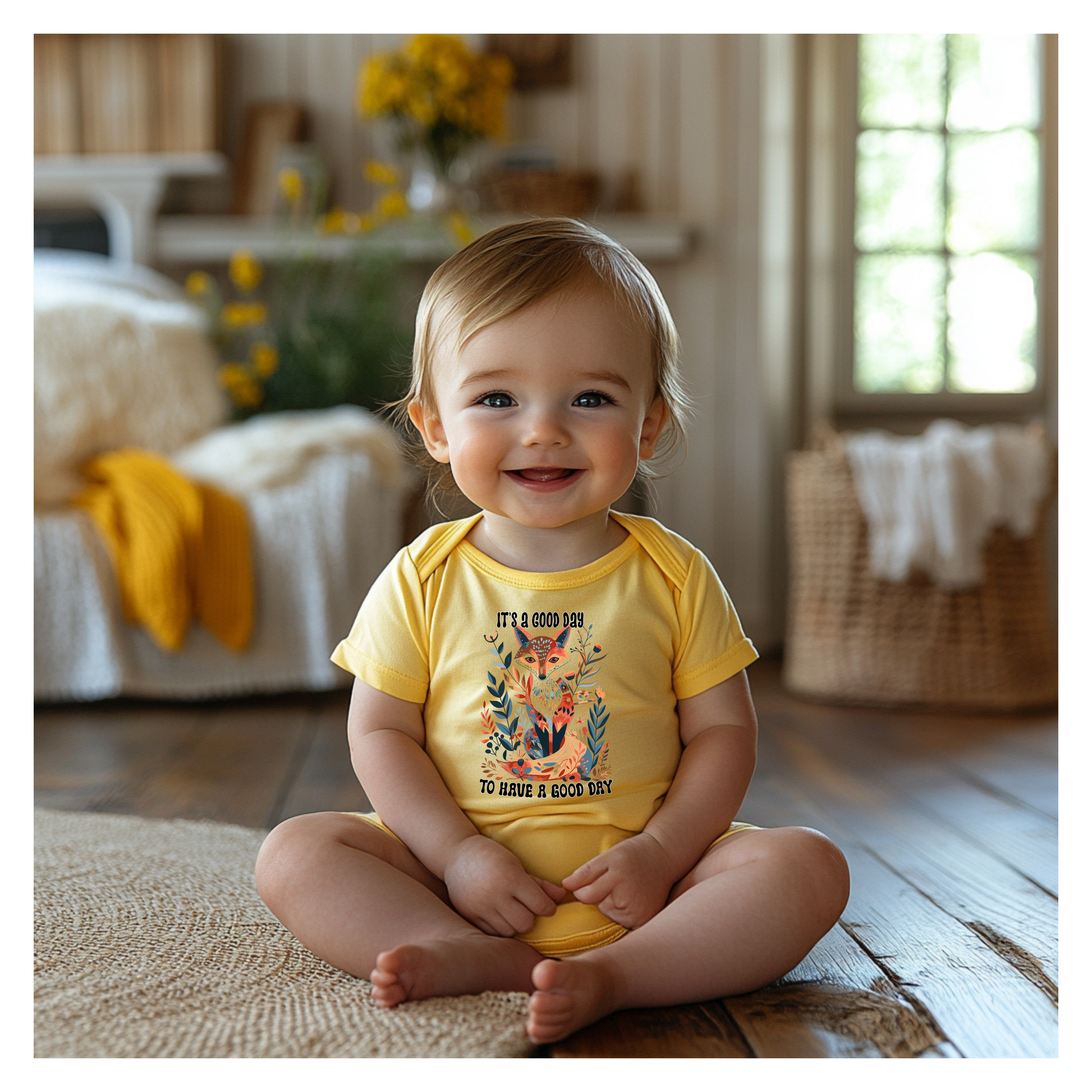 This boho-inspired baby fox onesie is perfect for your little one to spread positive vibes. A great baby shower gift, this cute onesie is sure to make any day a good day. It is ideal for infants and perfect for everyday wear or special occasions.