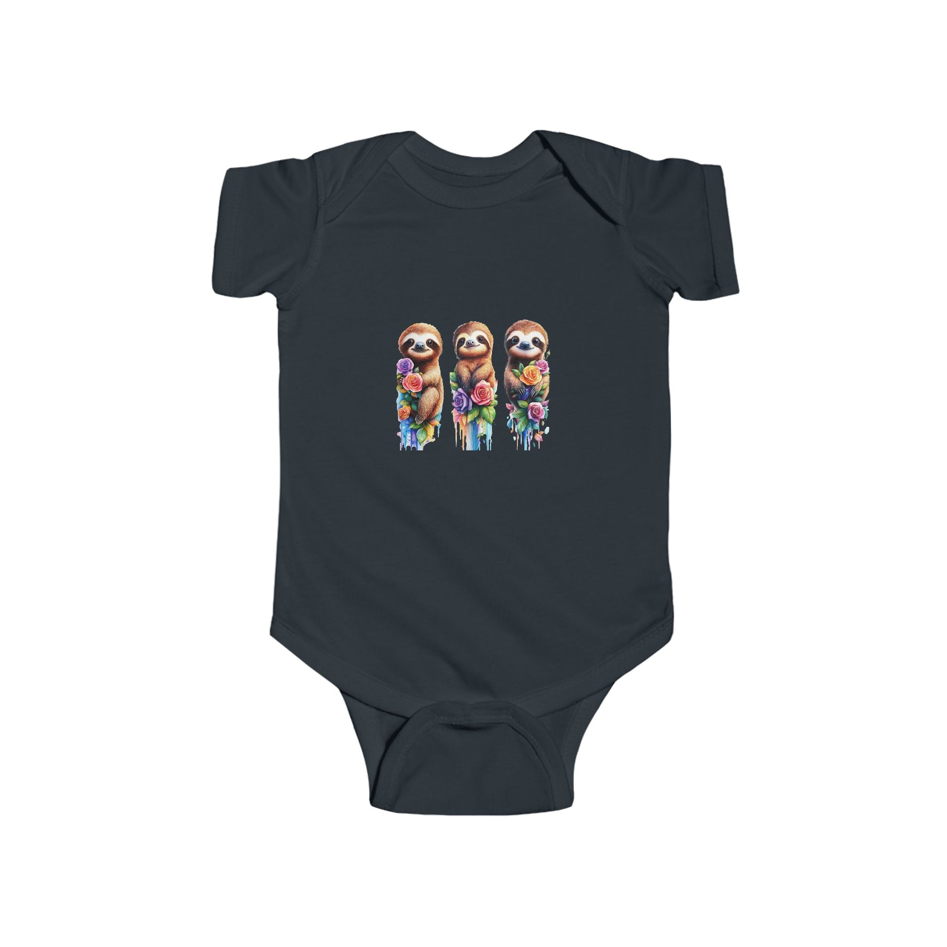 This adorable bodysuit features a watercolor design of a sloth surrounded by flowers, making it perfect for sloth lovers and as a cute baby shower gift. The soft and smooth fabric is gentle on infant skin, and the ribbed knit binding adds comfort and flexibility. Ideal for children, this bodysuit is REACH certified and made in India.
