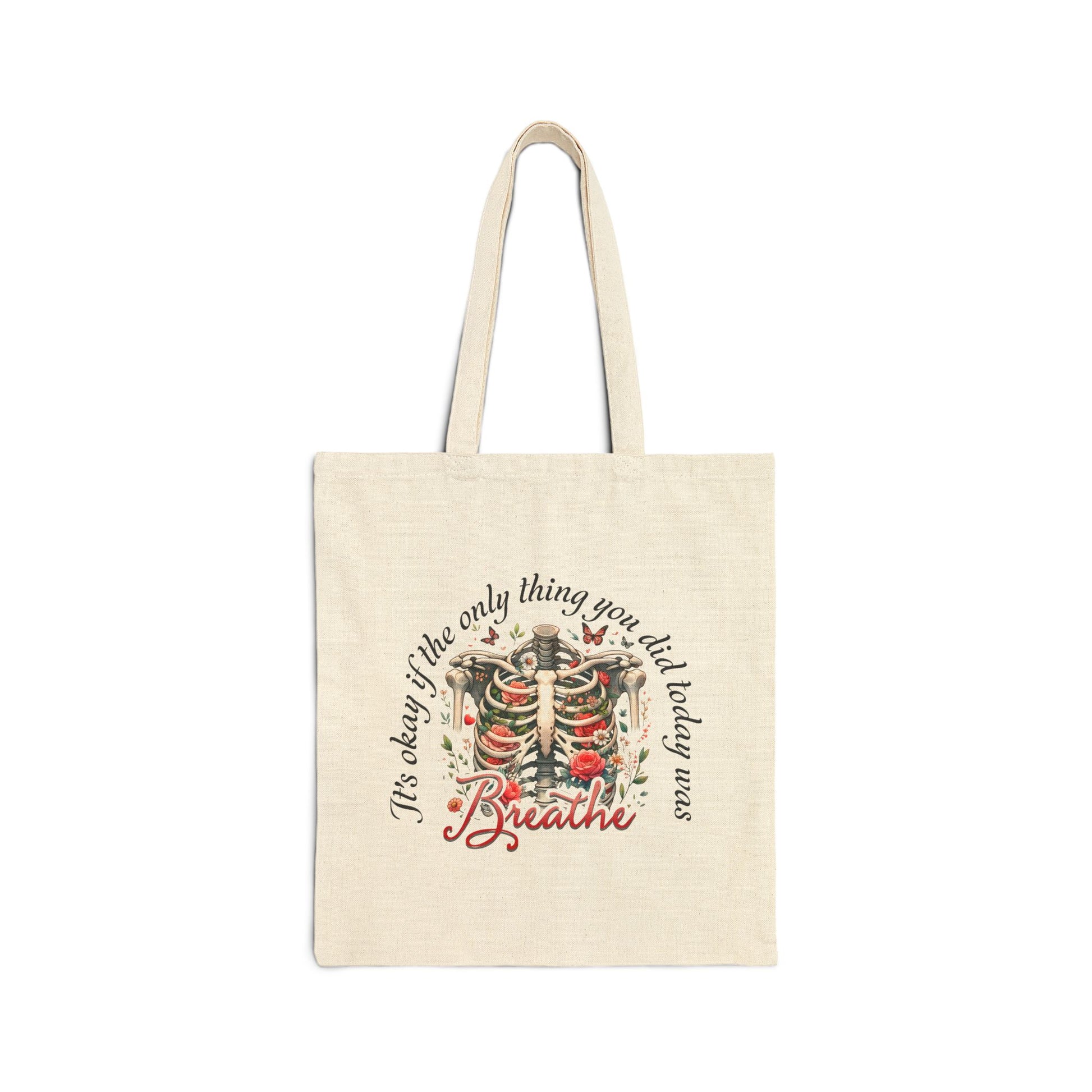 Breathe Tote Bag — Floral Ribcage "Breathe" Design