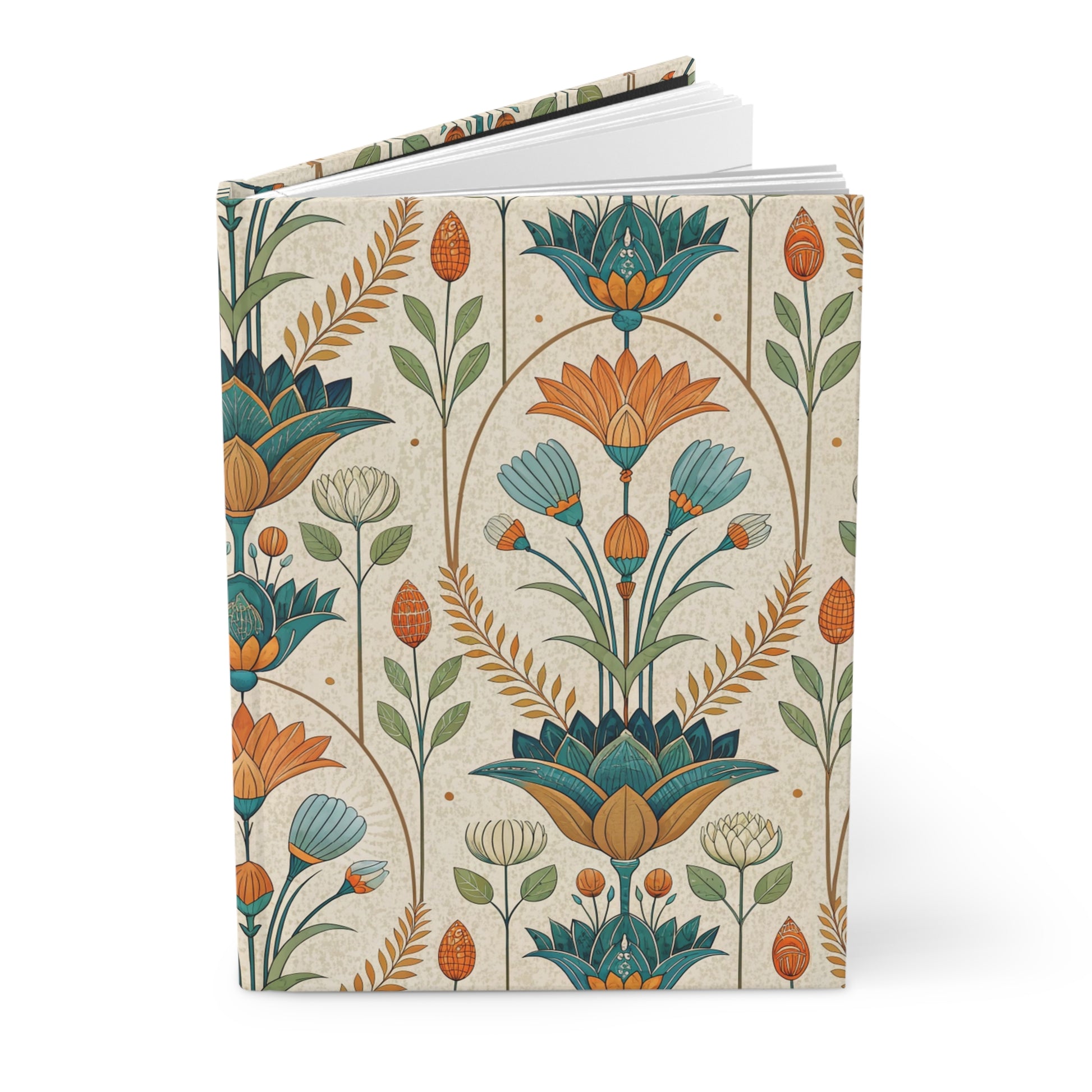 Egyptian Lotus Art Hardcover Journal — Vintage Botanical Pattern Notebook