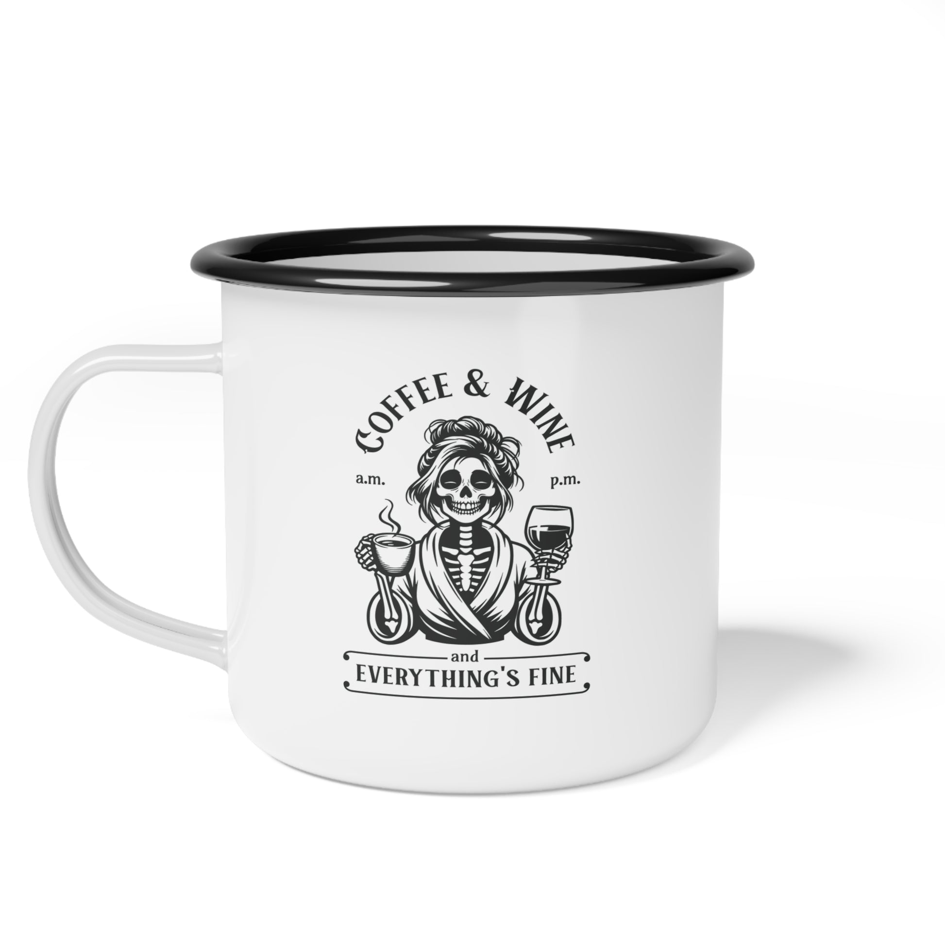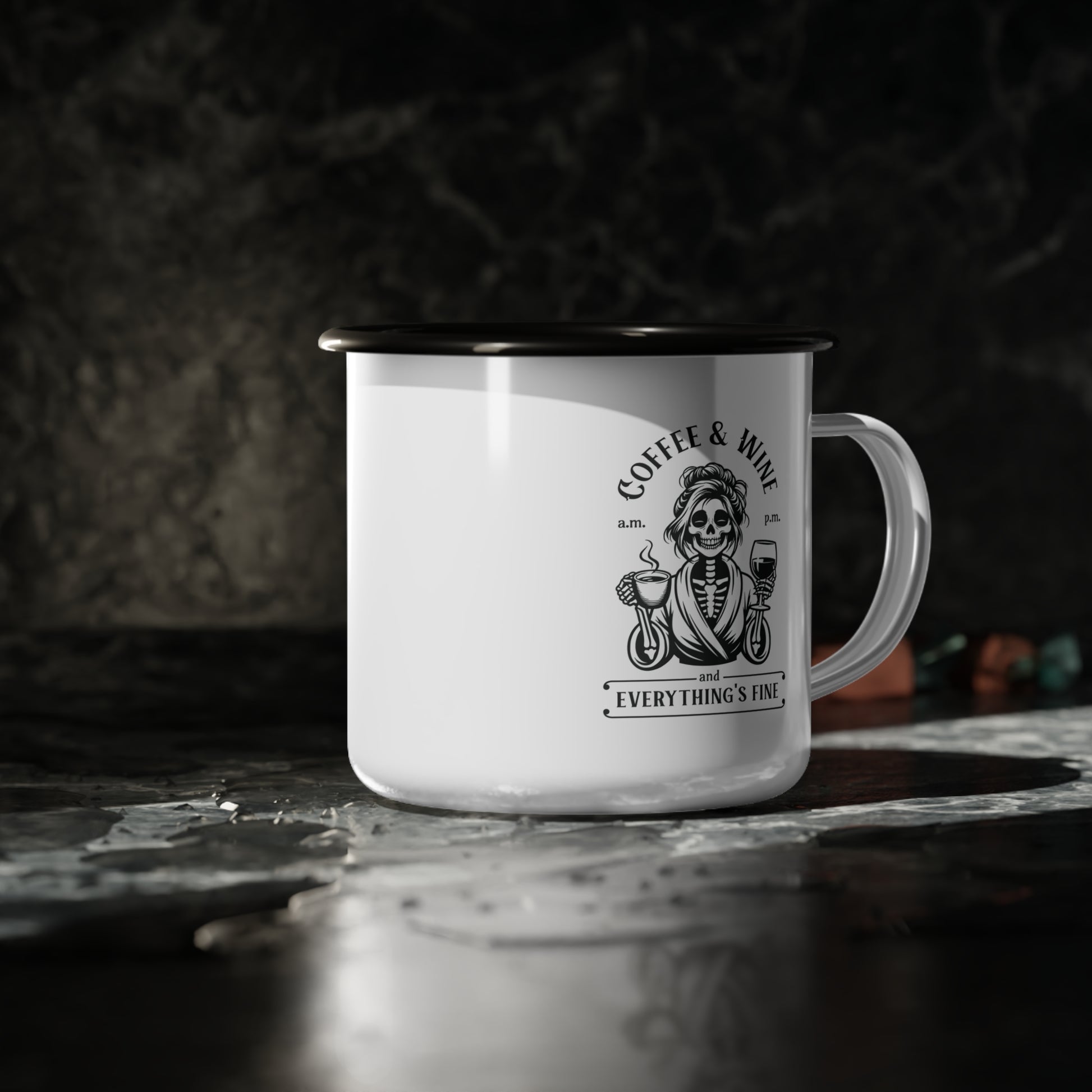 Enamel Camp Cup Mug - Skeleton Coffee & Wine Retro Design