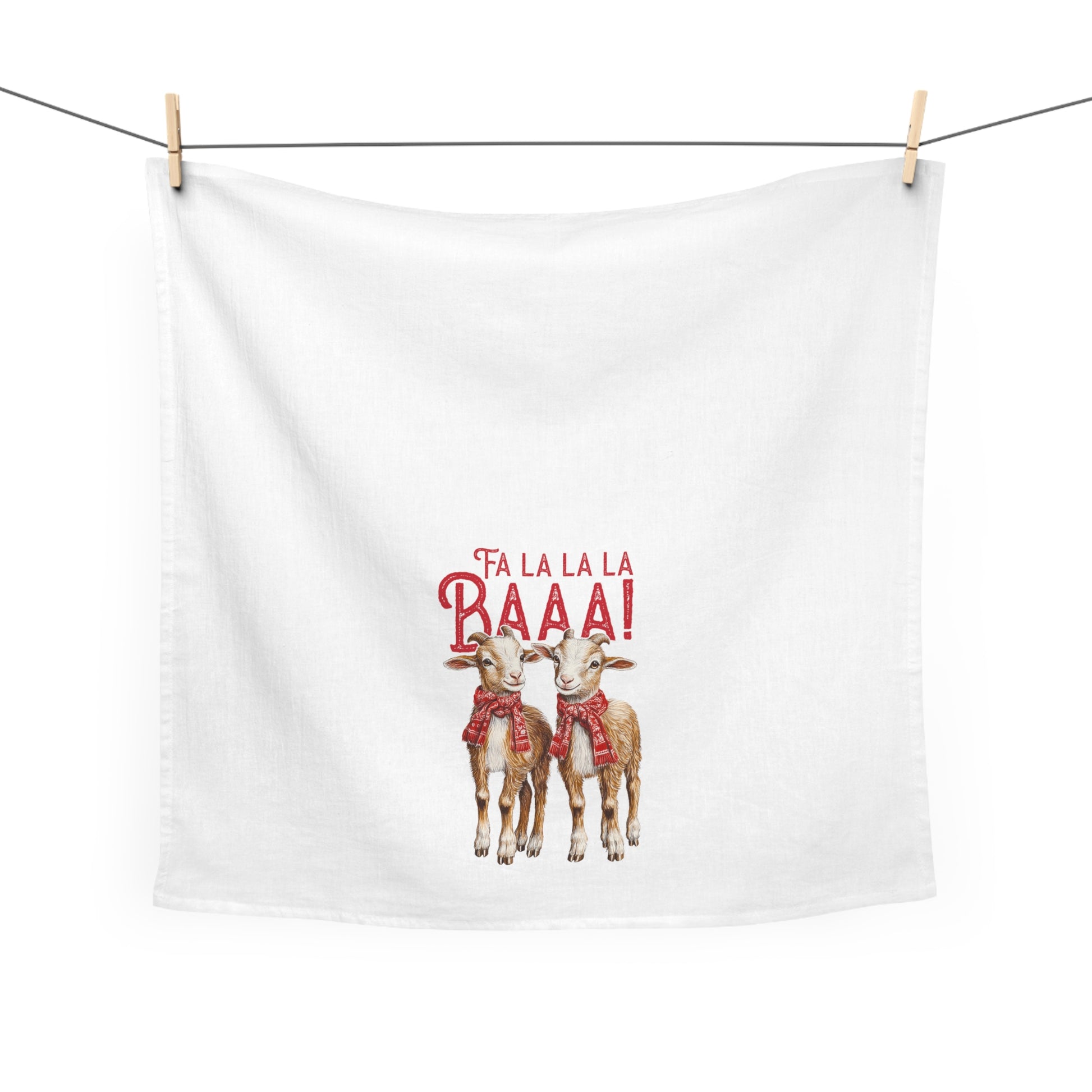 Brighten up your kitchen with this charming tea towel! Featuring an adorable design of festive sheep and the playful phrase "Fa la la la la Baaa!", this tea towel brings a joyful vibe to your home. Perfect for holiday gatherings, it's a delightful addition to your kitchen for Christmas, winter festivities, or any occasion where cheer is needed. This product is relevant for anyone who loves to cook or host, making it an ideal gift for friends, family, or even as a treat for yourself. It’s not just a kitchen accessory; it’s a fun expression of holiday spirit that complements festive meals or enhances everyday cooking routines.