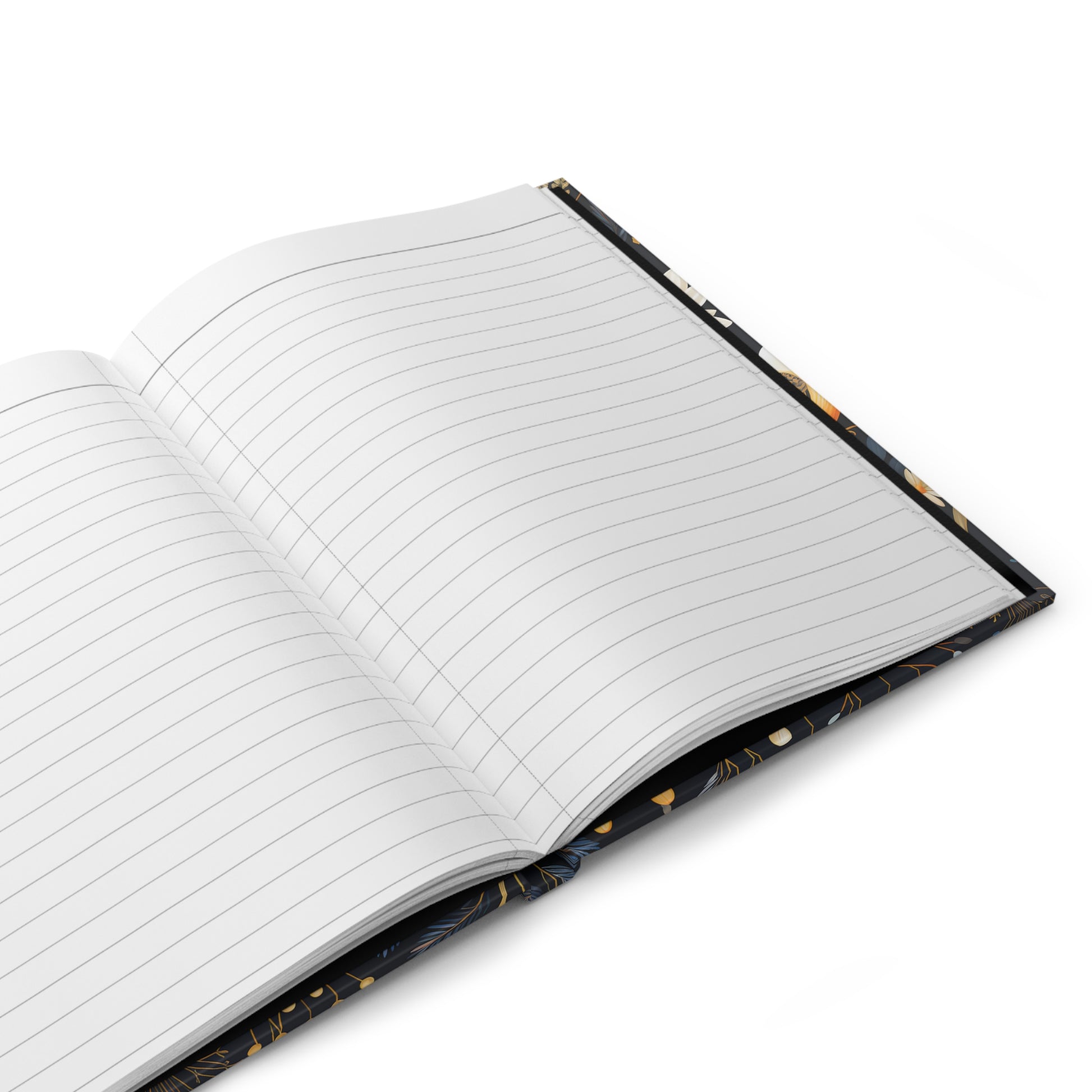 Floral Birds Hardcover Journal — Gold & Navy Botanical Notebook