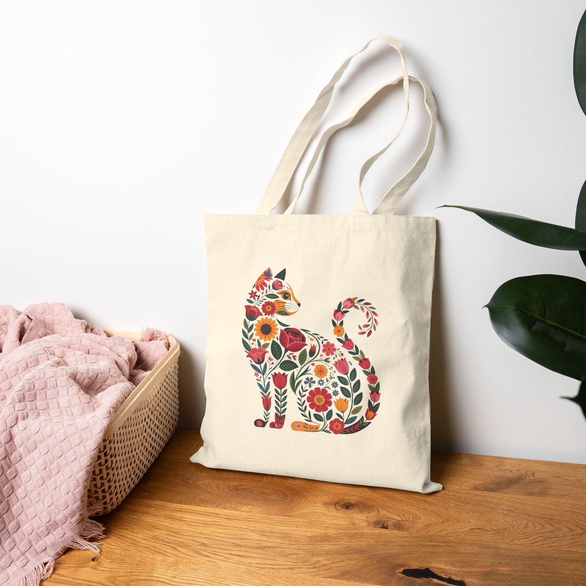 Floral Cat Canvas Tote Bag, Eco-Friendly Shopping Bag, Gift for Cat Lovers, Reusable Grocery Tote, Sustainable Bag