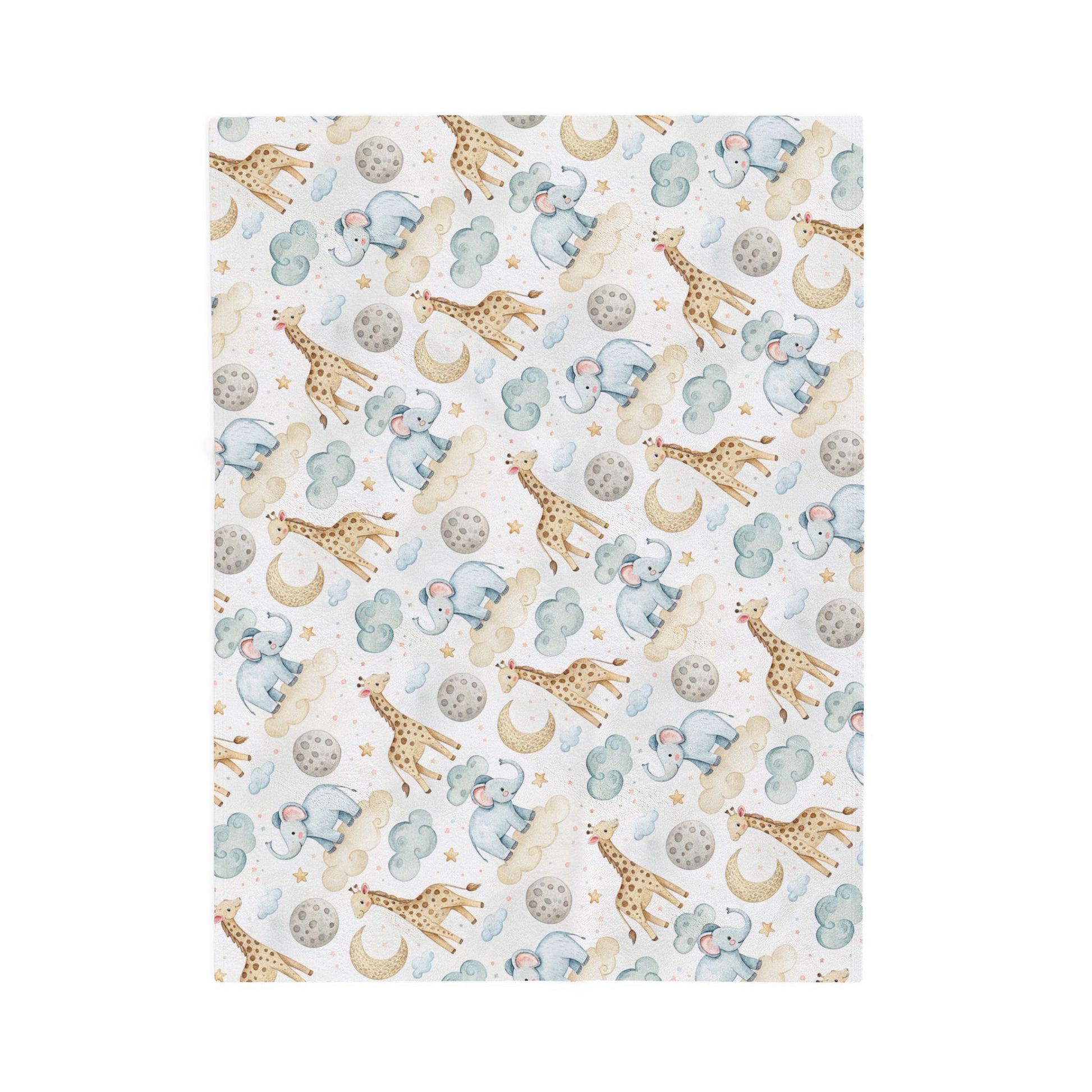 This Grey Moon Baby Blanket features adorable elephants and giraffes, making it a perfect addition to any cute animal nursery. It is a great baby shower gift for new parents. The velveteen plush material gives a cozy and soft feeling, perfect for snuggling up with your little one. Ideal for parents, expecting parents, and anyone looking for a sweet and charming baby gift. Suitable for baby showers, birthdays, and newborn celebrations.