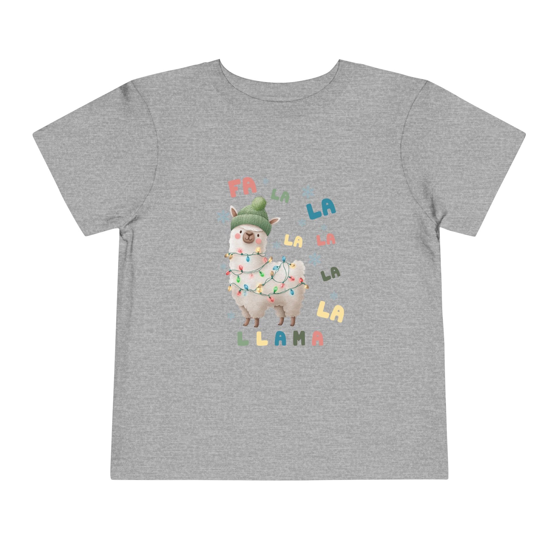 Festive toddler tee featuring a cute holiday llama design, perfect for Christmas and animal lovers. This light and breathable tee is ideal for toddlers to wear during the holiday season, giving off a cheerful and playful vibe. Relevant for parents shopping for cute and festive clothing for their toddlers for Christmas and winter celebrations.