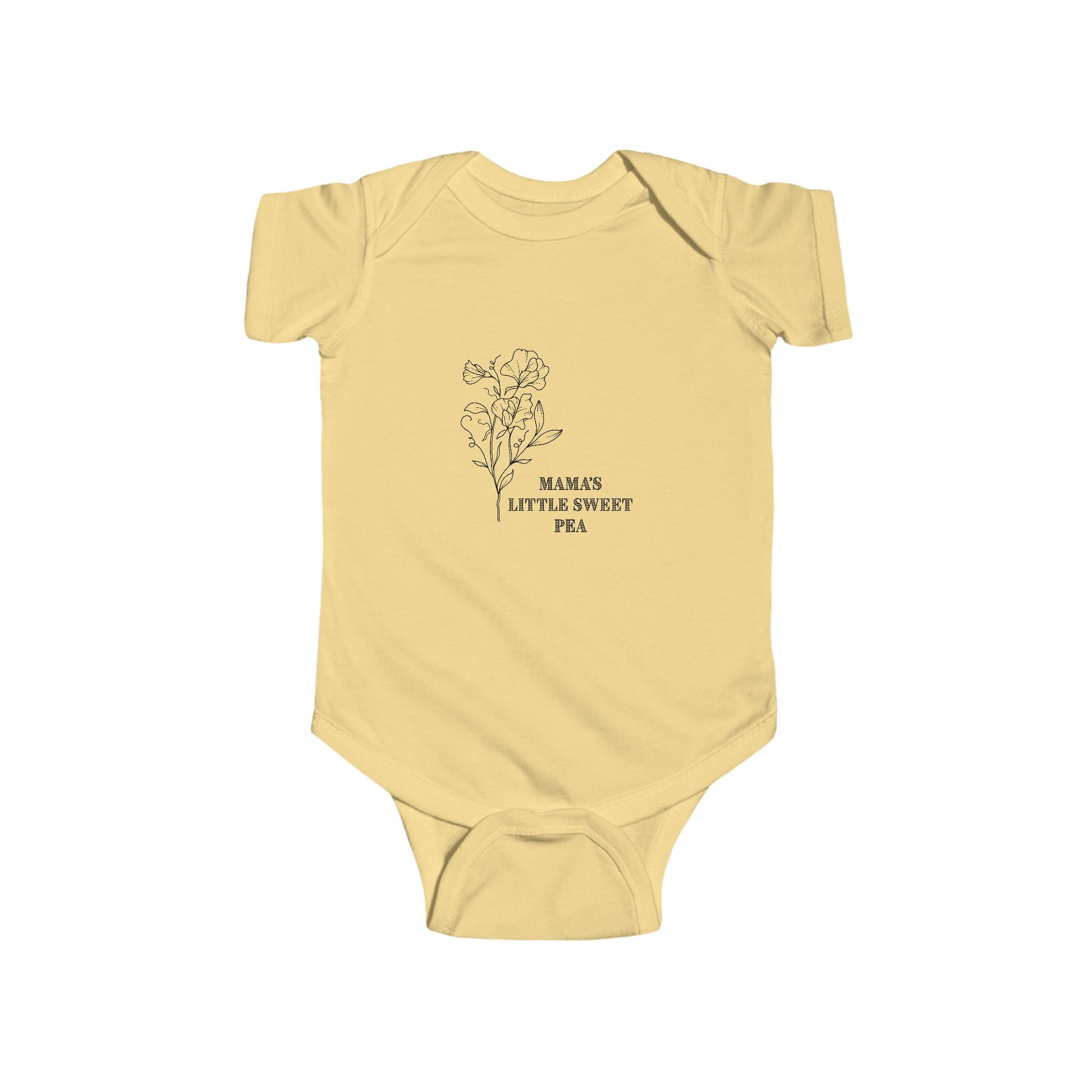 This Mama's Little Sweet Pea Infant Bodysuit is a cute and stylish outfit for newborns and toddlers. It is the perfect baby shower gift for flower lovers, giving off a sweet and charming vibe. Ideal for parents looking for adorable clothing for their little ones. Relevant for baby showers, birthdays, and everyday wear.