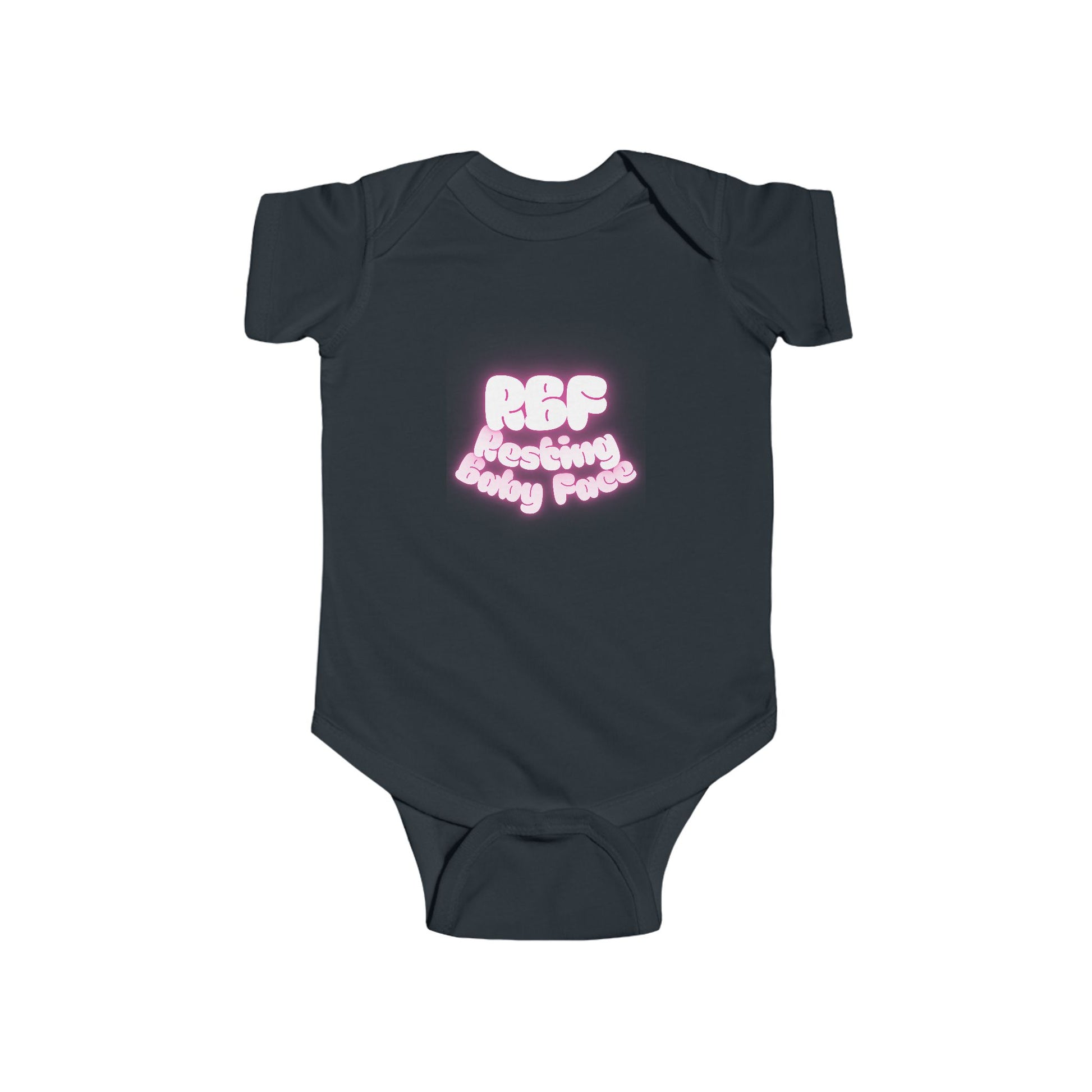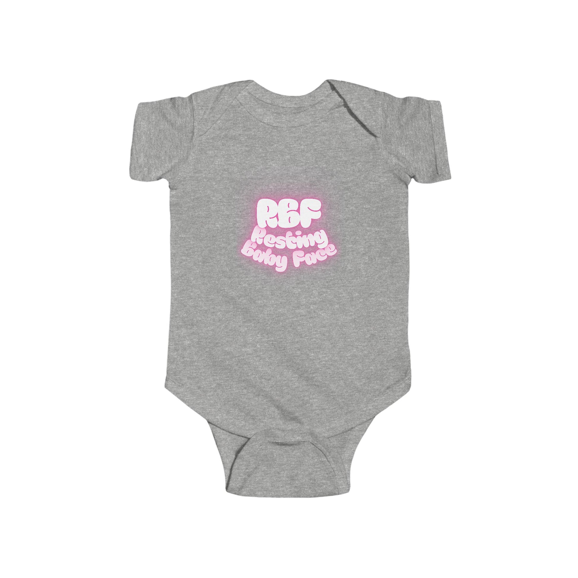 This funny onesie with rbf (resting baby face) design is perfect for your little one. It brings a playful and adorable vibe, making it a great addition to any baby girl's wardrobe. It is relevant for parents looking for cute and humorous baby outfits, and it is perfect for baby showers, birthdays, and everyday wear.