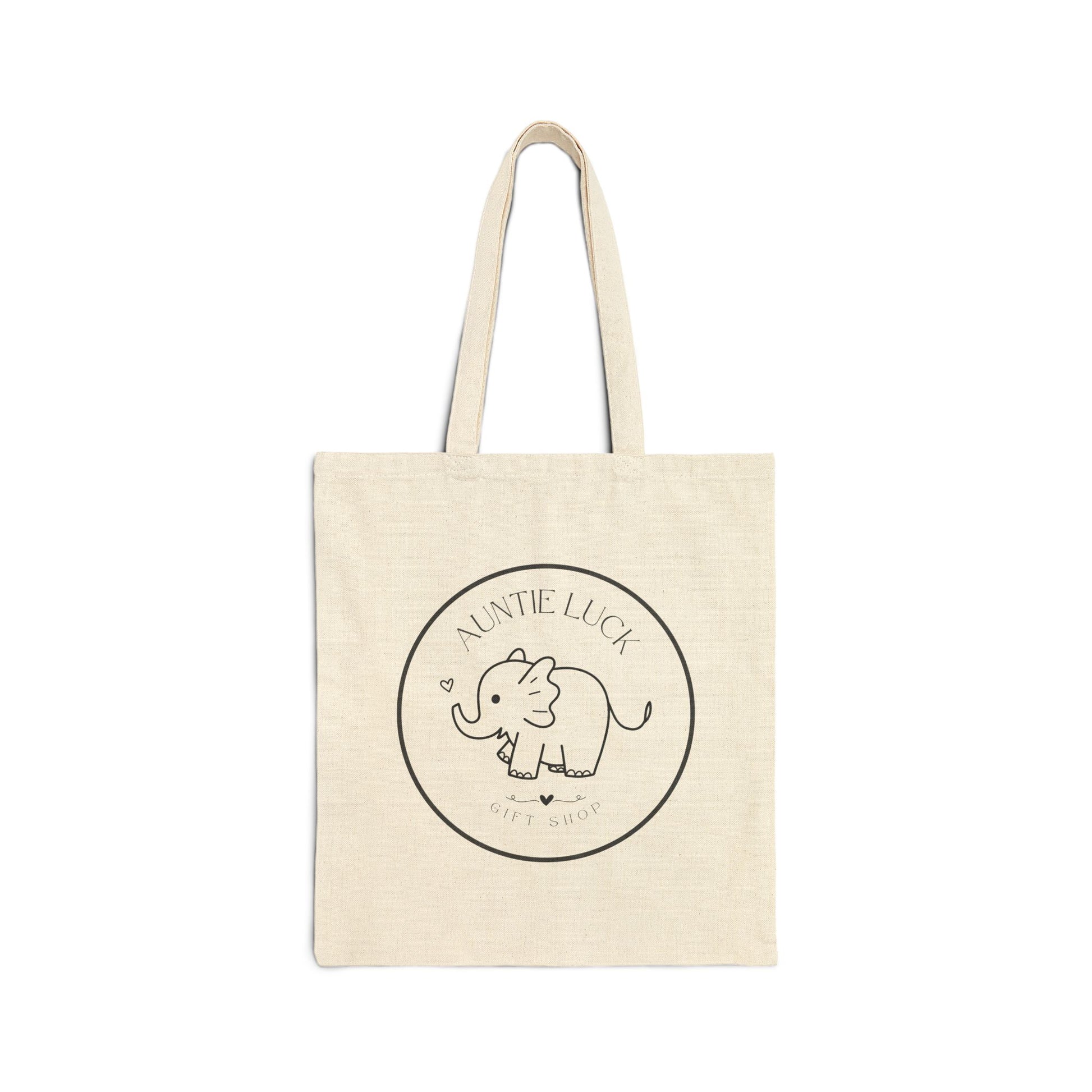 Signature Auntie Luck Logo Elephant Cotton Canvas Tote Bag | Eco-Friendly Shopping, Gift for Kids, Cute Animal Lover, Birthday Bag, Nursery Decor