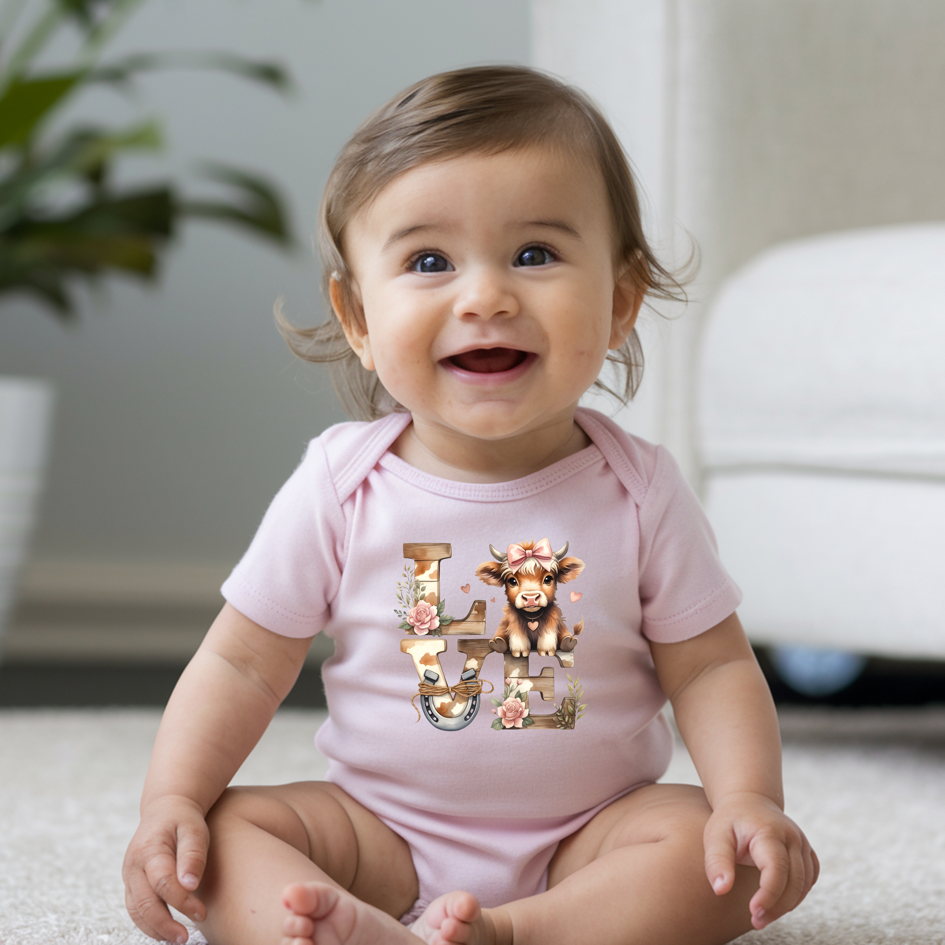 Soft, light, and gentle on baby skin — this infant bodysuit wraps little ones in plain comfort with a touch of countryside charm. The front features a warm, illustrated motif that blends playful animals and floral details into bold block letters, bringing a quiet, homegrown feel to everyday wear. Easy to slip on and off with envelope shoulders and matching snaps at the crotch, it’s designed for quick changes and cozy naps. The ribbed knit binding gives stretch where babies need it, while the tear-away label avoids irritation. Breathable combed ringspun cotton keeps newborns comfortable through feeding, playtime, and quiet evenings at home.