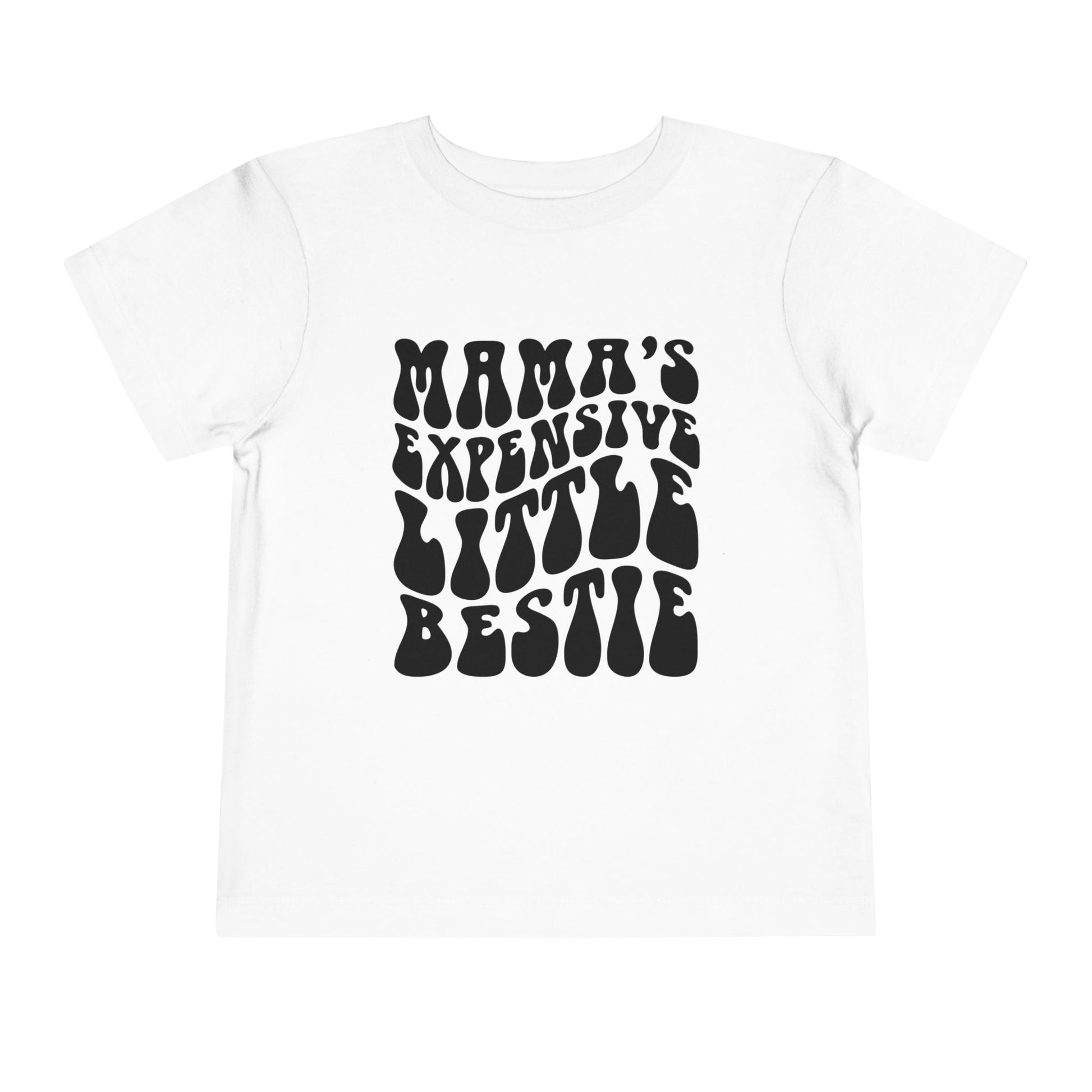 This Mama's Expensive Little Bestie Toddler Tee is perfect for the stylish and adorable toddler who loves to show off their bond with mom. The cute design will bring a smile to anyone's face and create a sweet, heartfelt atmosphere. This tee is a great addition to a toddler's wardrobe and makes a perfect gift for Mother's Day, birthdays, or just because. Ideal for toddlers who share a special connection with their mom and want to flaunt it proudly.