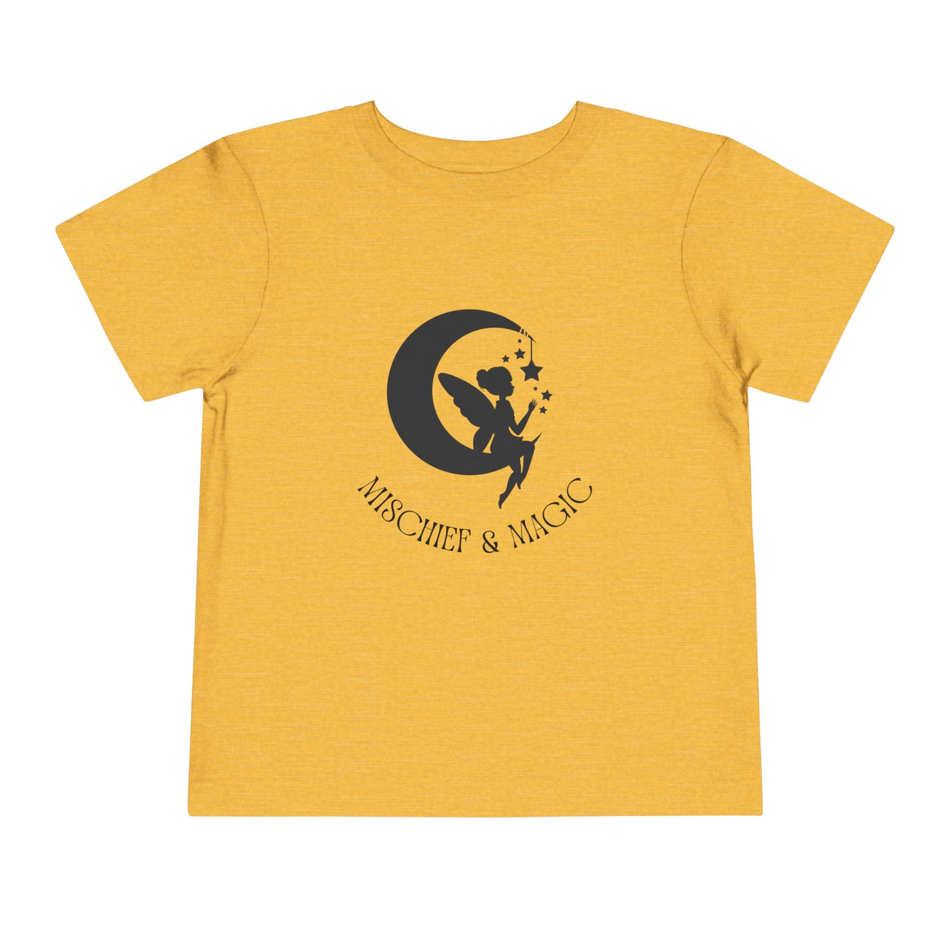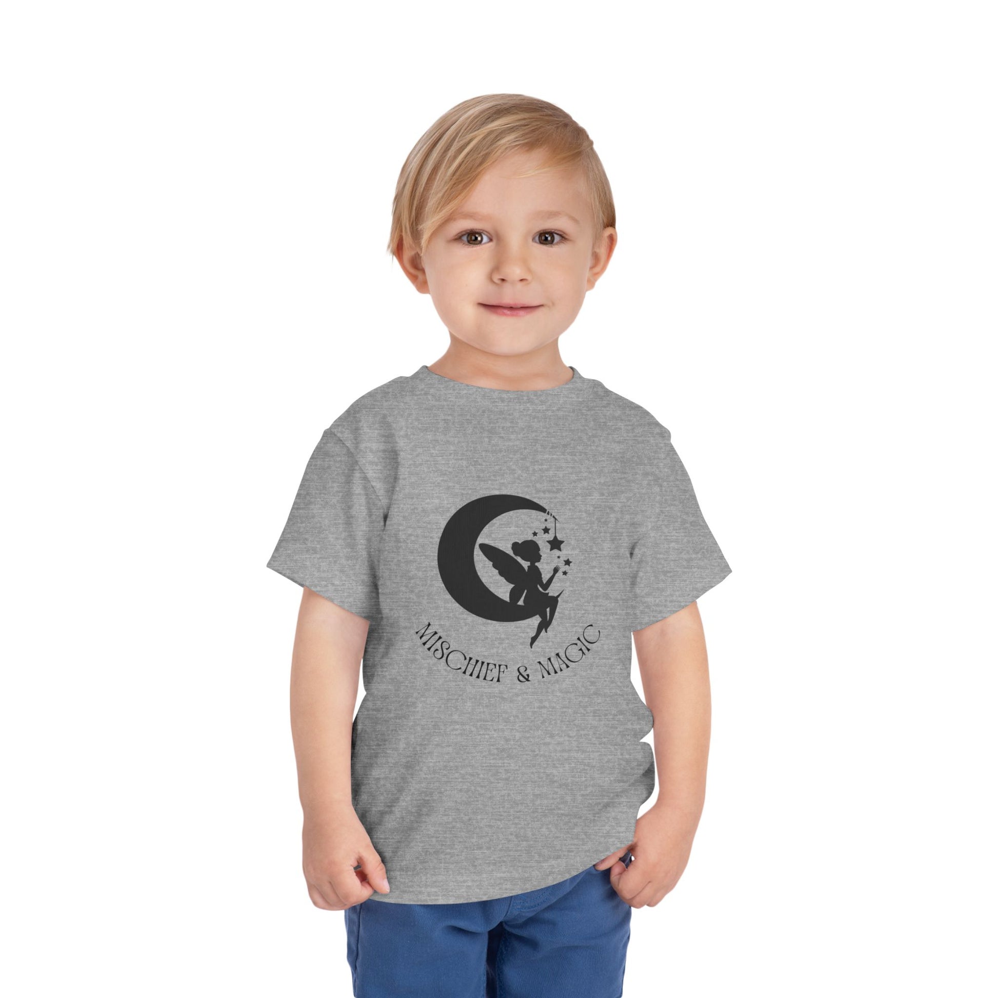 This playful toddler tee captures the essence of mischief and magic, featuring a fairy and moon design that sparks the imagination. Made of light fabric, this Bella+Canvas shirt is perfect for little ones to wear during playtime or for special occasions. Ideal for parents looking to add a touch of fantasy to their child's wardrobe, especially during Halloween or themed birthday parties.