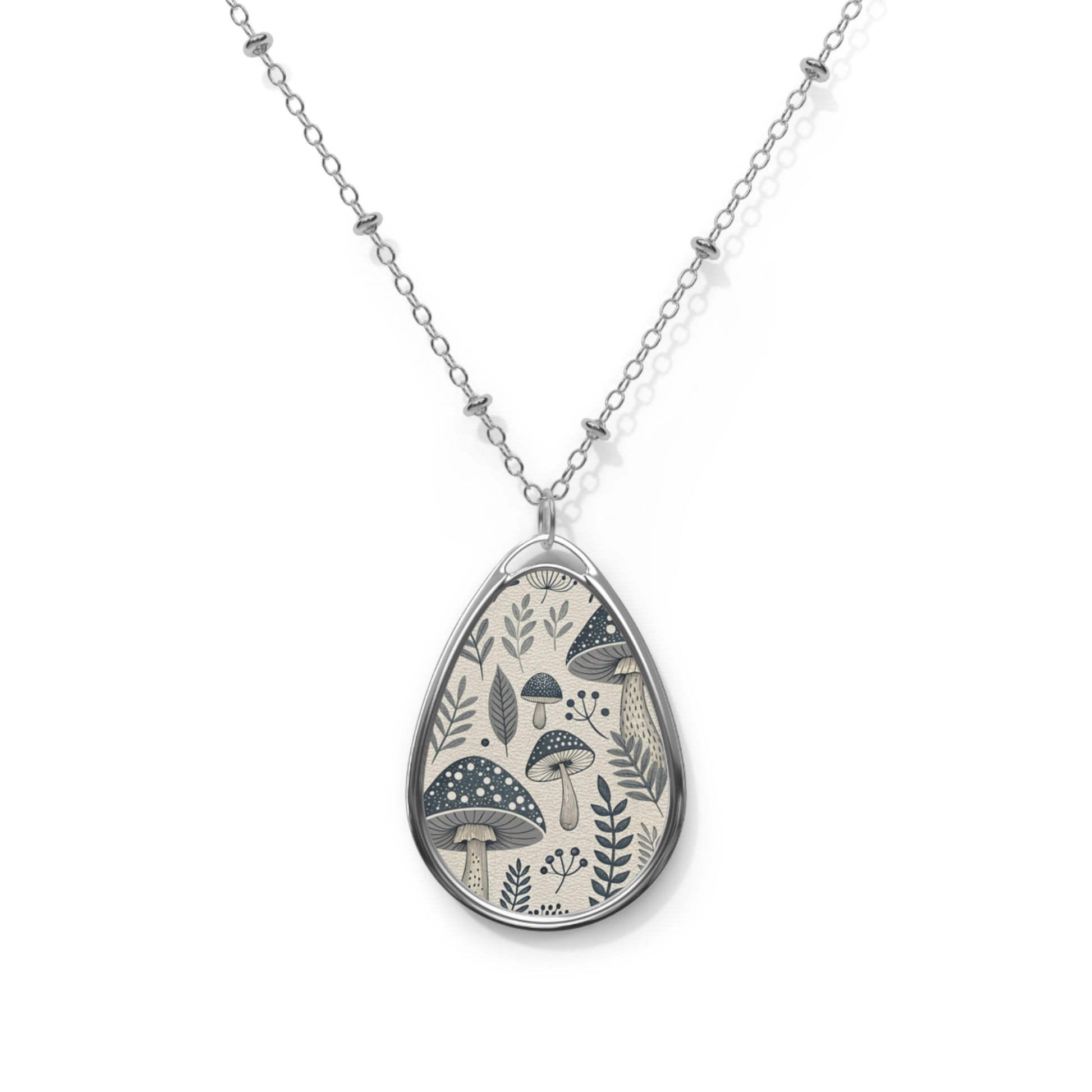 Mushroom Oval Necklace – Botanical Teardrop Pendant Necklace