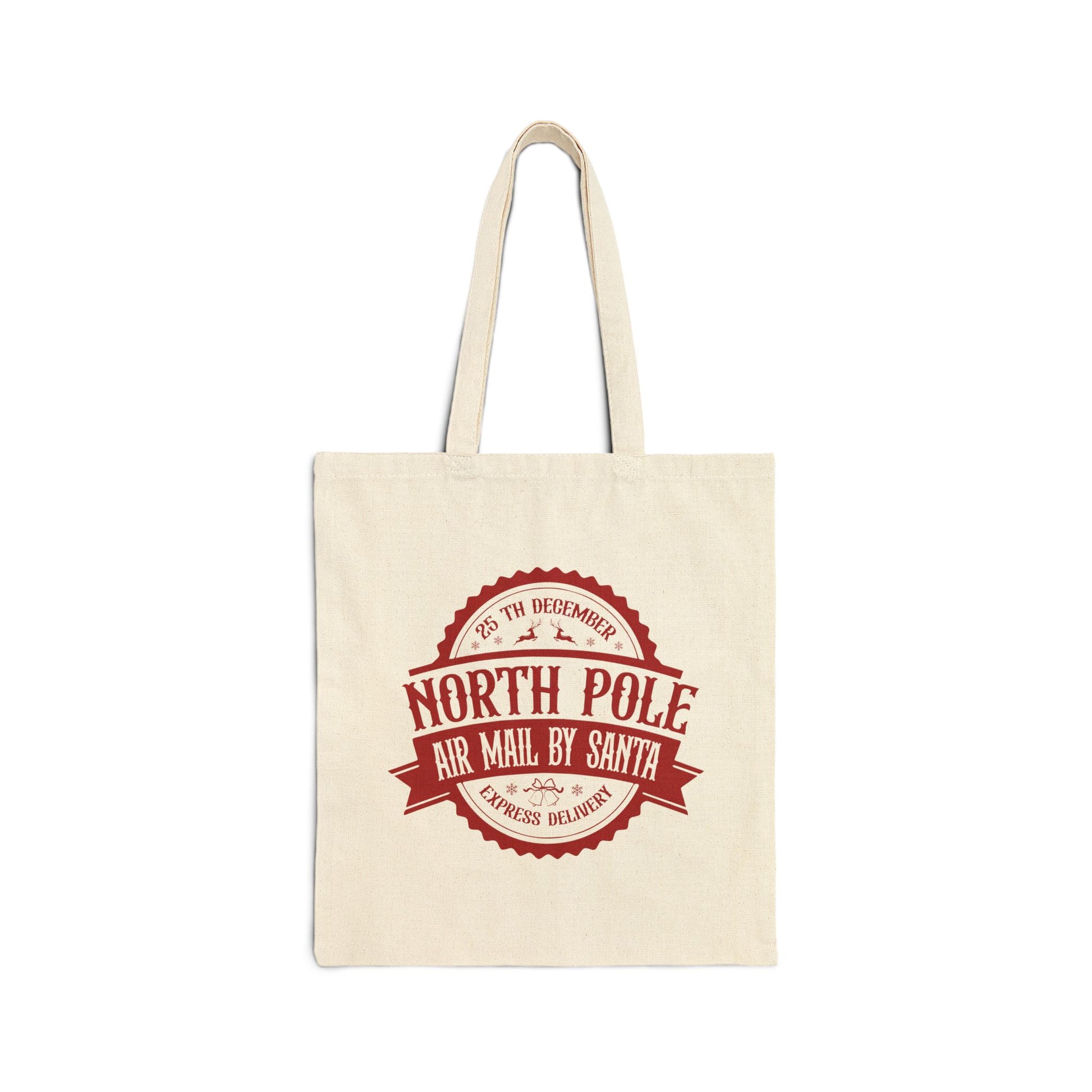 This charming Cotton Canvas Tote Bag brings a sense of whimsy and joy to everyday errands and holiday celebrations. Tuck it under your tree with gifts for the kiddos, and create a delivery they will remember. Crafted from durable 100% cotton canvas, it effortlessly combines style and functionality. Ideal for carrying festive goodies, groceries, or daily essentials, this tote offers plenty of space while maintaining a chic aesthetic. Its flat corners and sturdy handles enhance usability, making it perfect for adults on the go. Great for the eco-conscious shopper or anyone who loves a touch of cheer, this tote bag is an excellent choice for gifts during holidays, birthdays, or special occasions. With its playful ‘North Pole Air Mail’ design, it adds a festive vibe perfect for Christmas and the holiday season, as well as winter markets and gift exchanges.