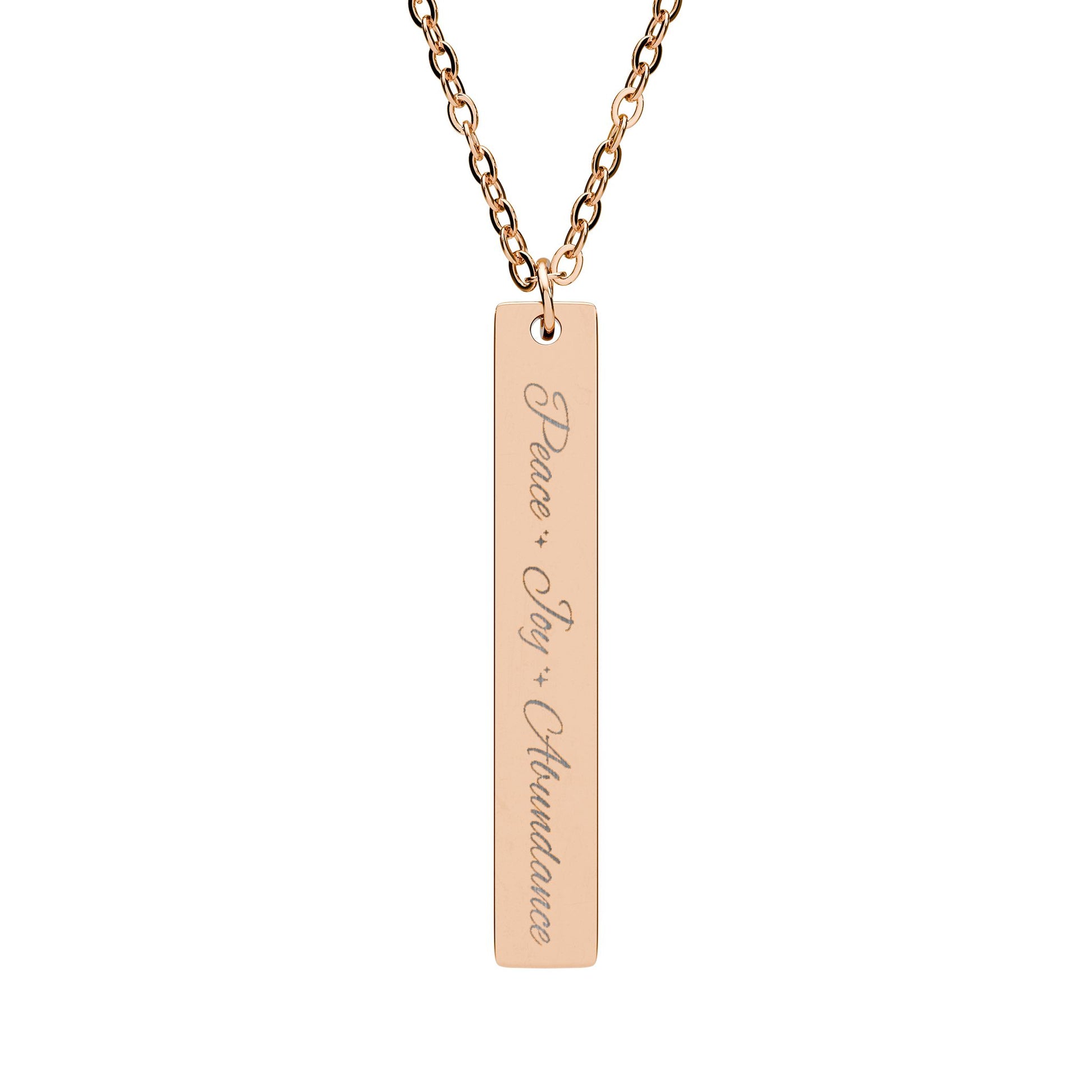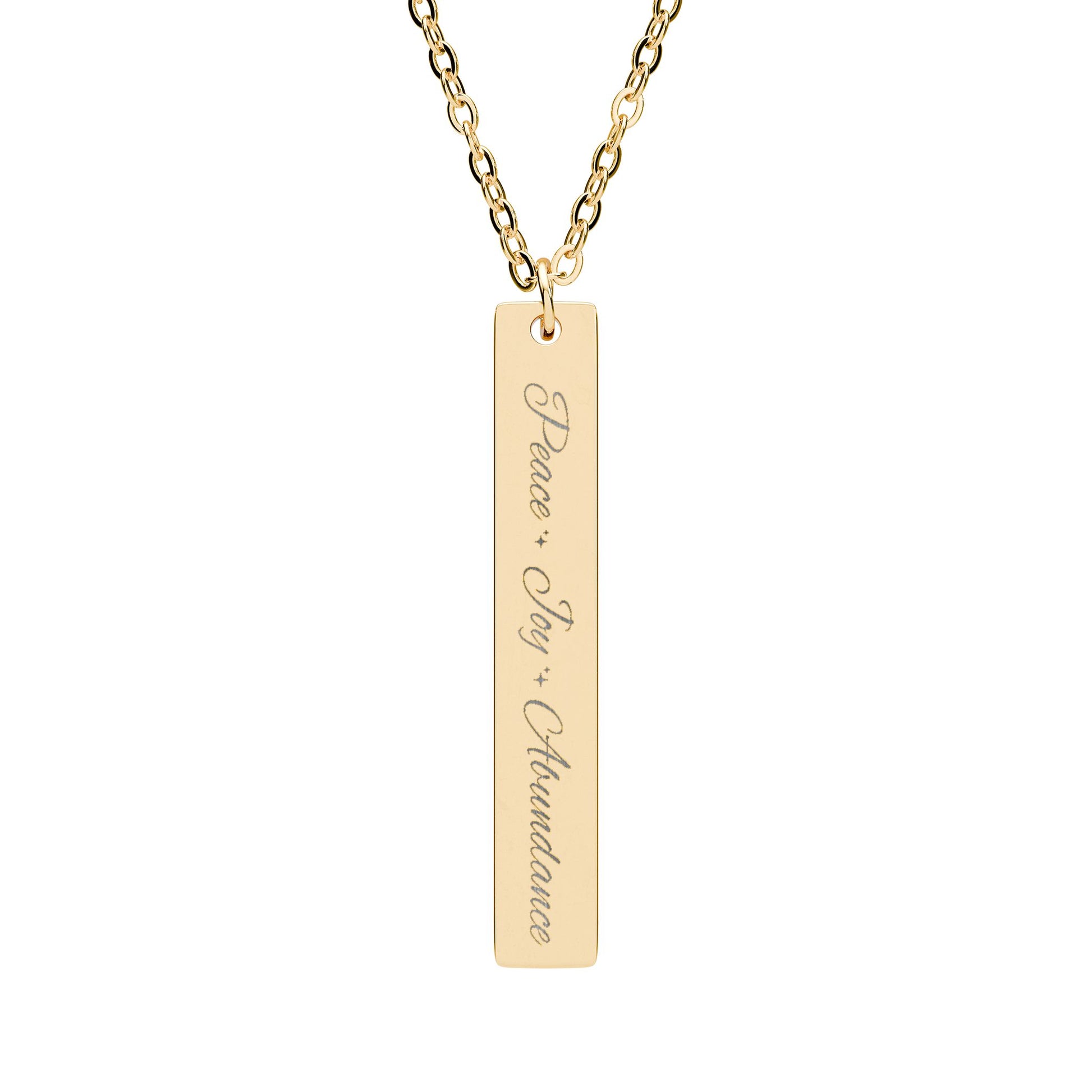 Peace Joy Abundance Engraved Vertical Bar Necklace — Good Vibes Pendant